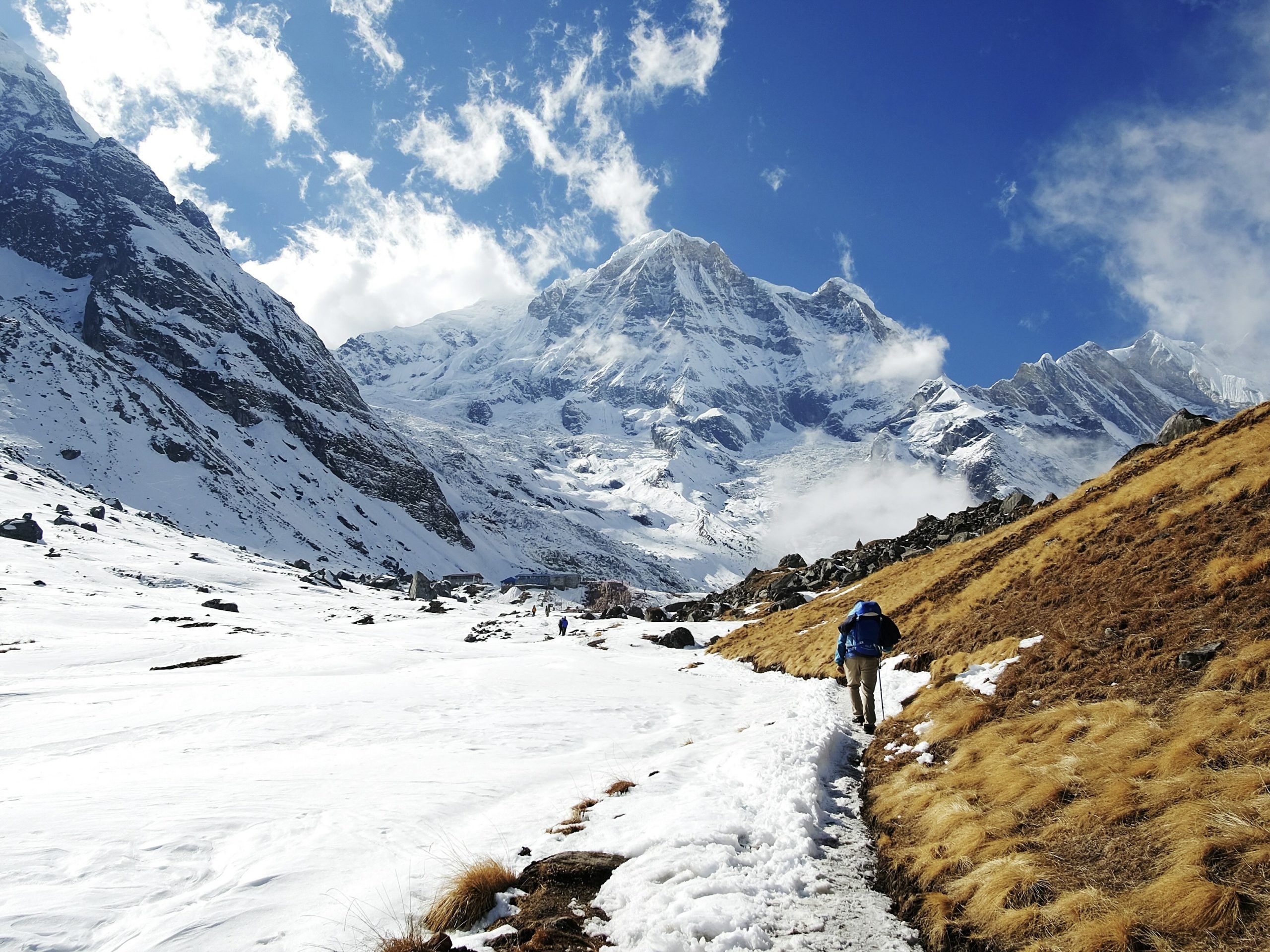 Walk from the bed of glacier to Macchapuchere base can and further to Annapurna base camp before clouds roll in. Best close view of Annapurna with several other mountain peaks.